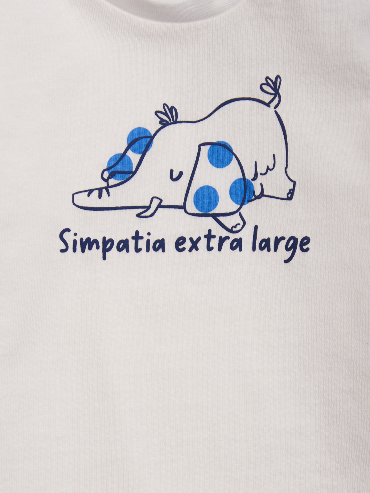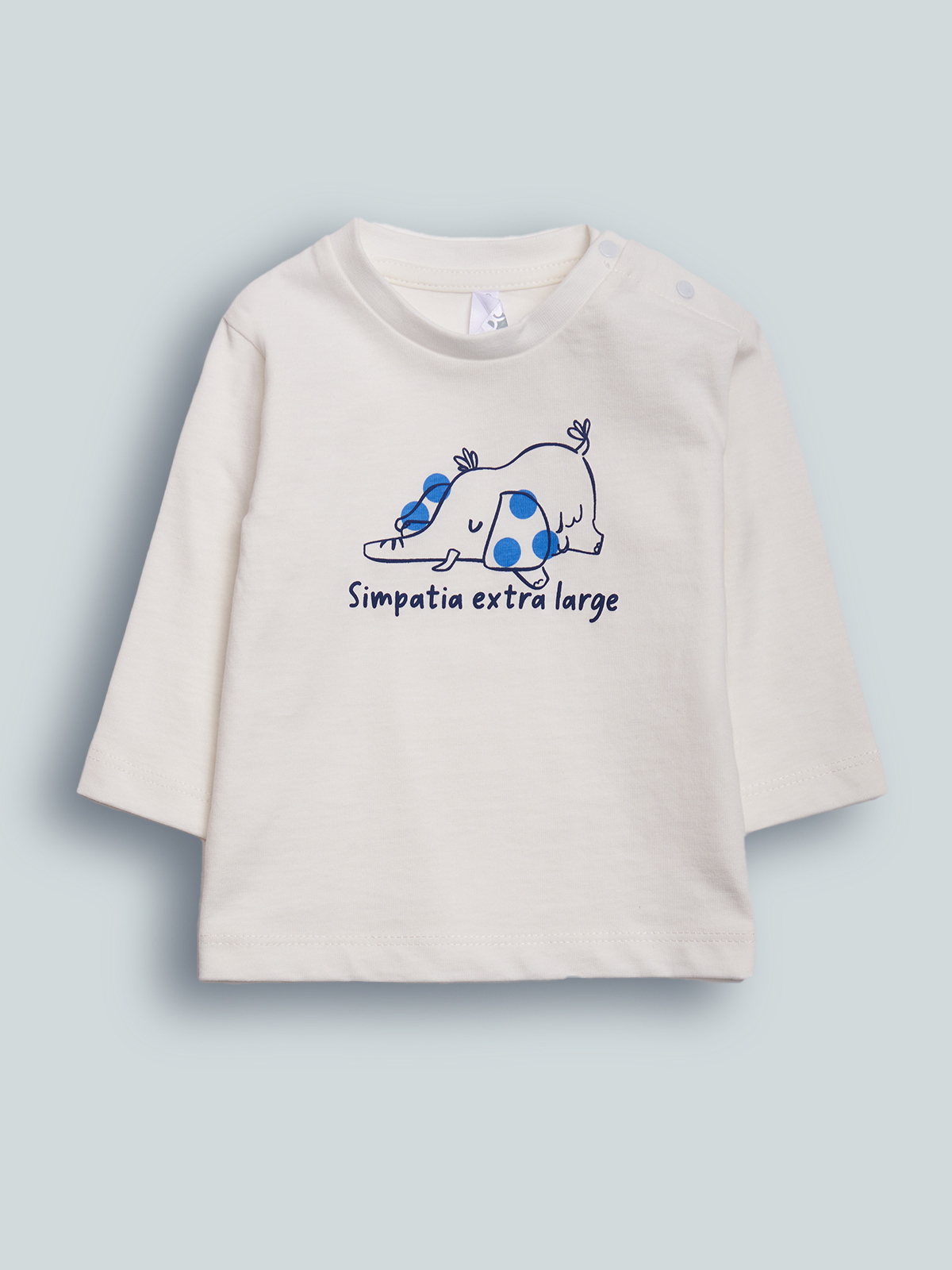 Tshirt girocollo a Manica lunga in cotone. Pratica apertura con bottoncini a pressione su spalla, spiritosa stampa humor. Casual e originale, perfetta con un paio di jeans.
