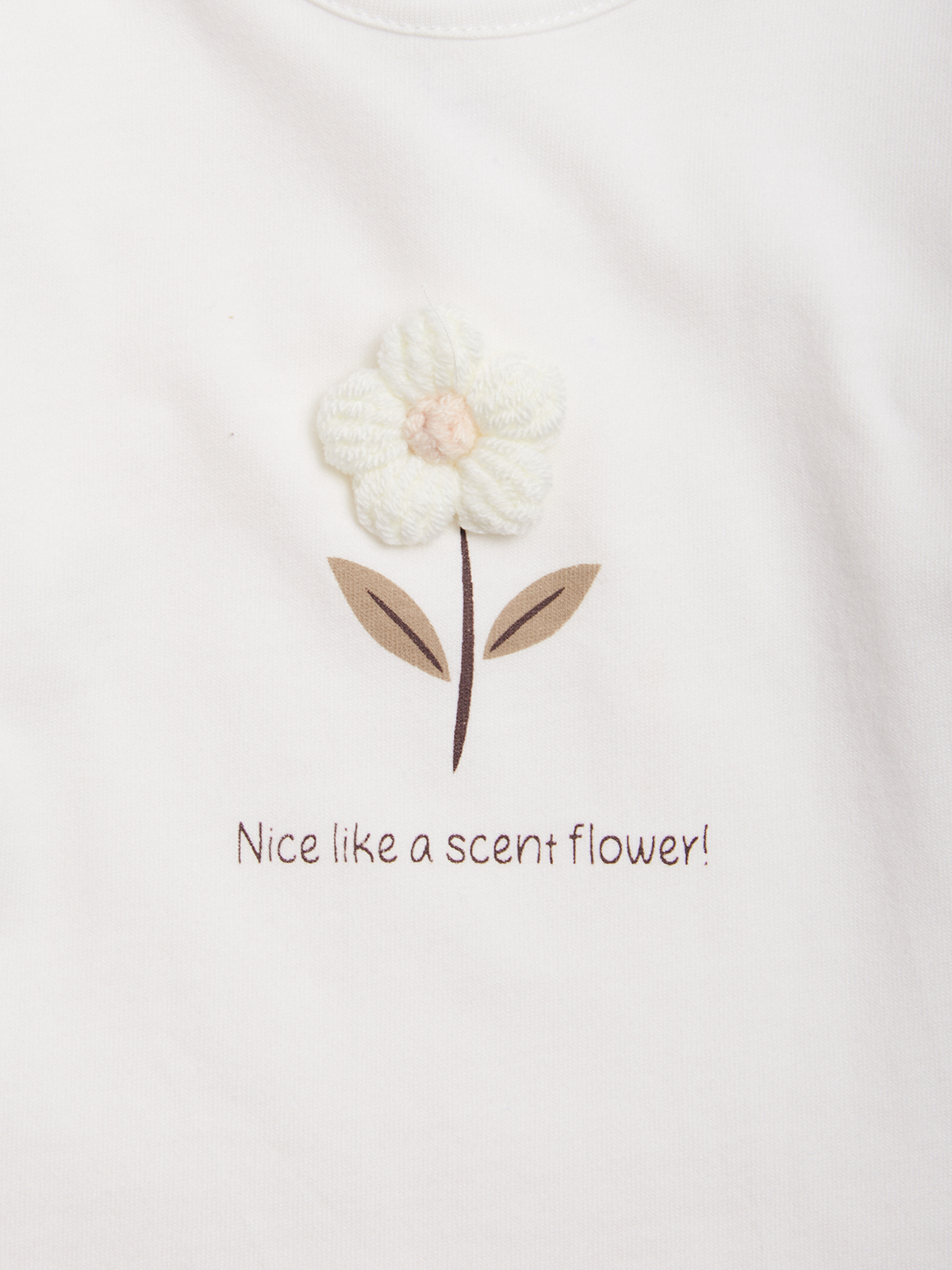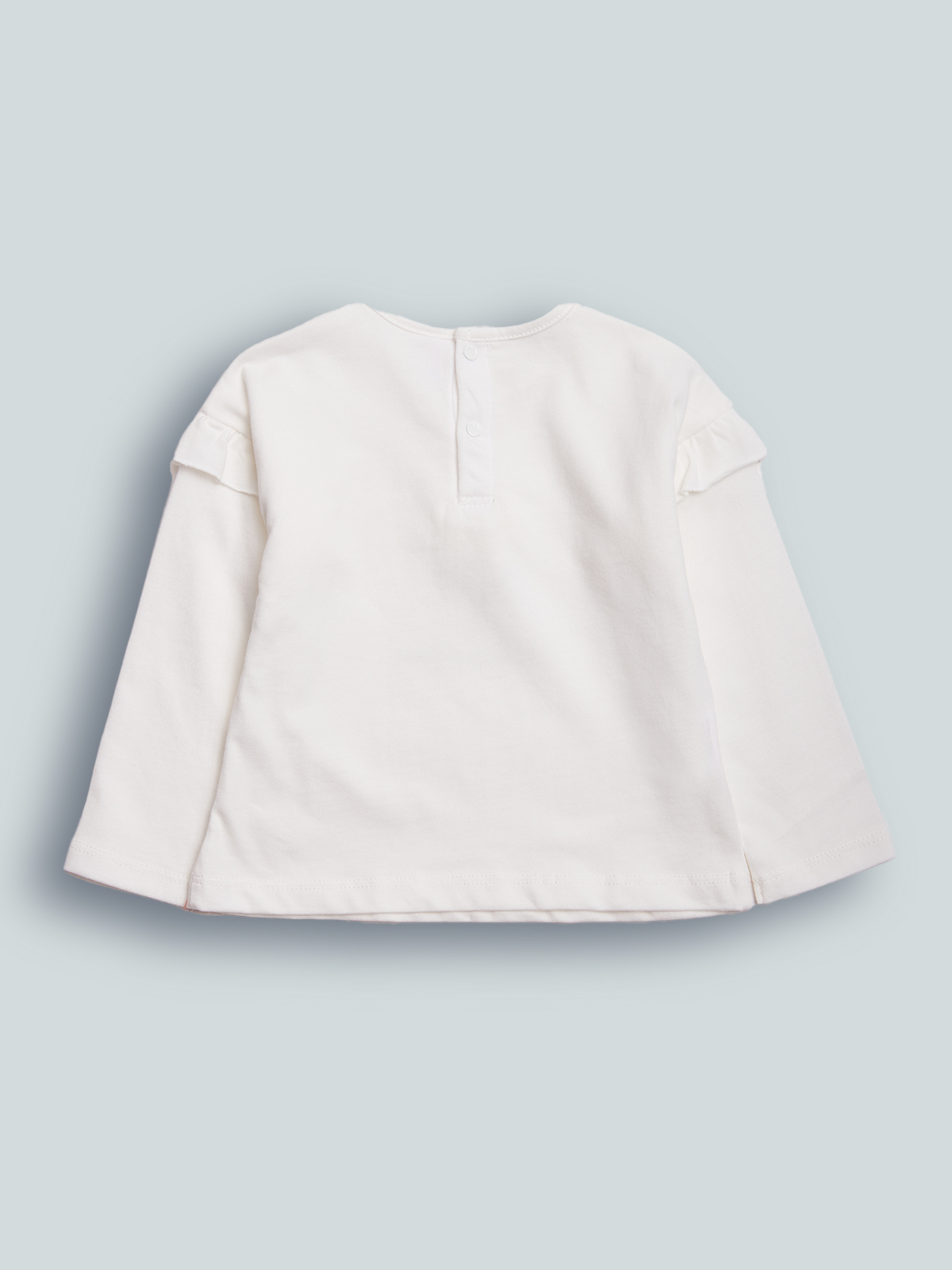Tshirt in caldo cotone manica lunga con pratica apertura sul dietro grazie ai bottoncini a pressione. Fiore tridimensionale in applicazione con stampa scritta. Un capo fashion e di facile abbinamento.