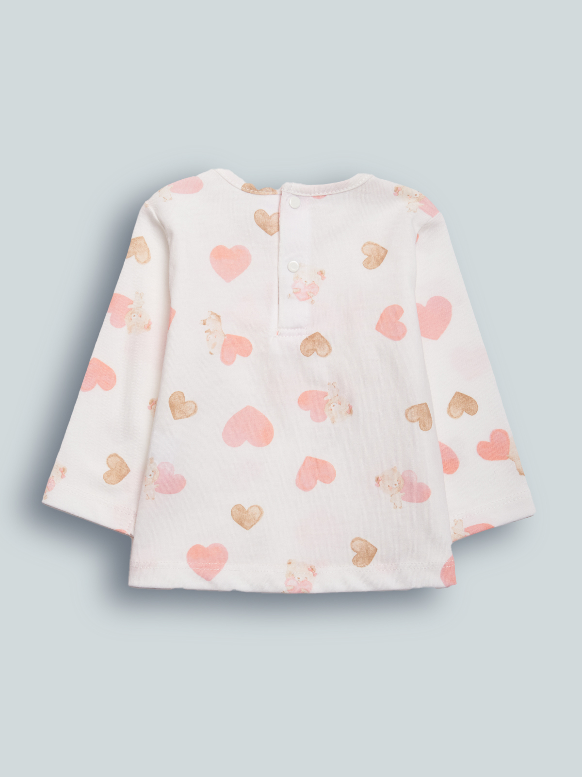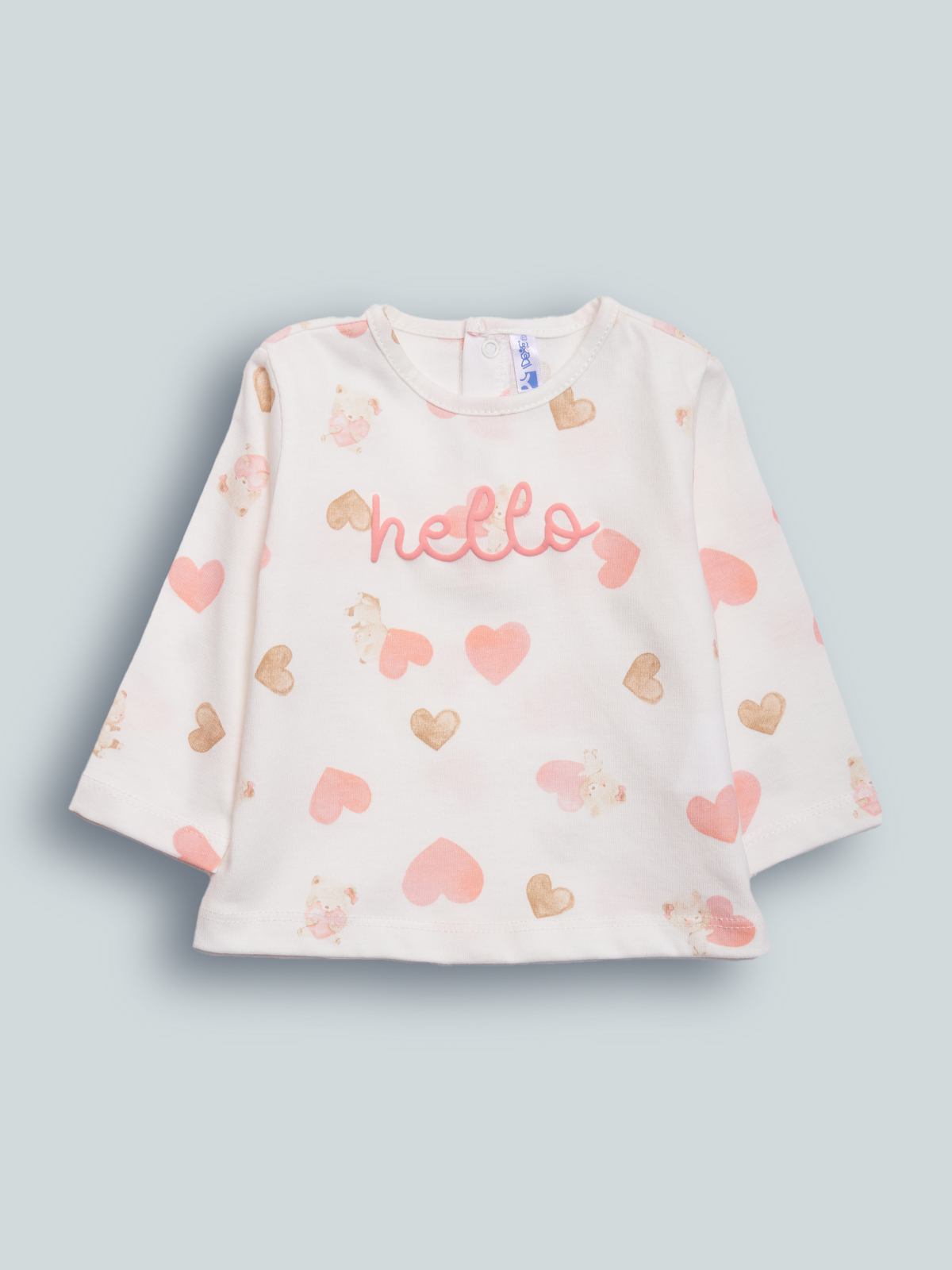 Tshirt girocollo a Manica lunga in cotone stampato. Davanti arricchito da simpatica grafica, pratica apertura sul dietro con bottoncini a pressione. Per iniziare la giornata all’insegna dell’allegria.
