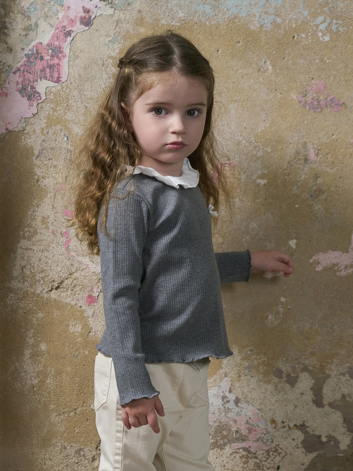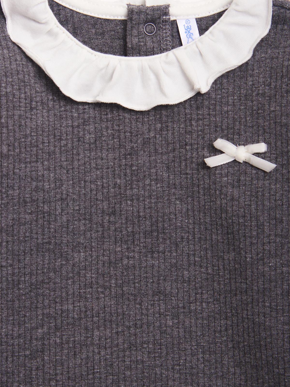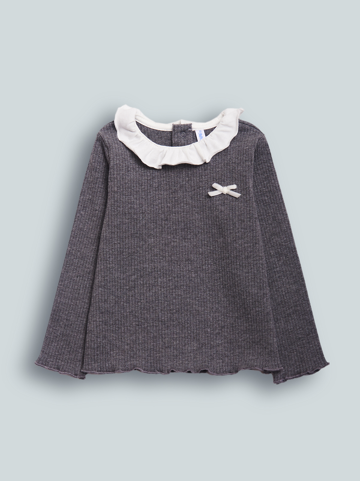 Tshirt in Morbido tessuto costina, Manica lunga con colletto in cotone a contrasto. Fiocco tridimensionale in applicazione velour. Modello con vestibilità slim. Un capo versatile, perfetto per ogni tipo di outfit.