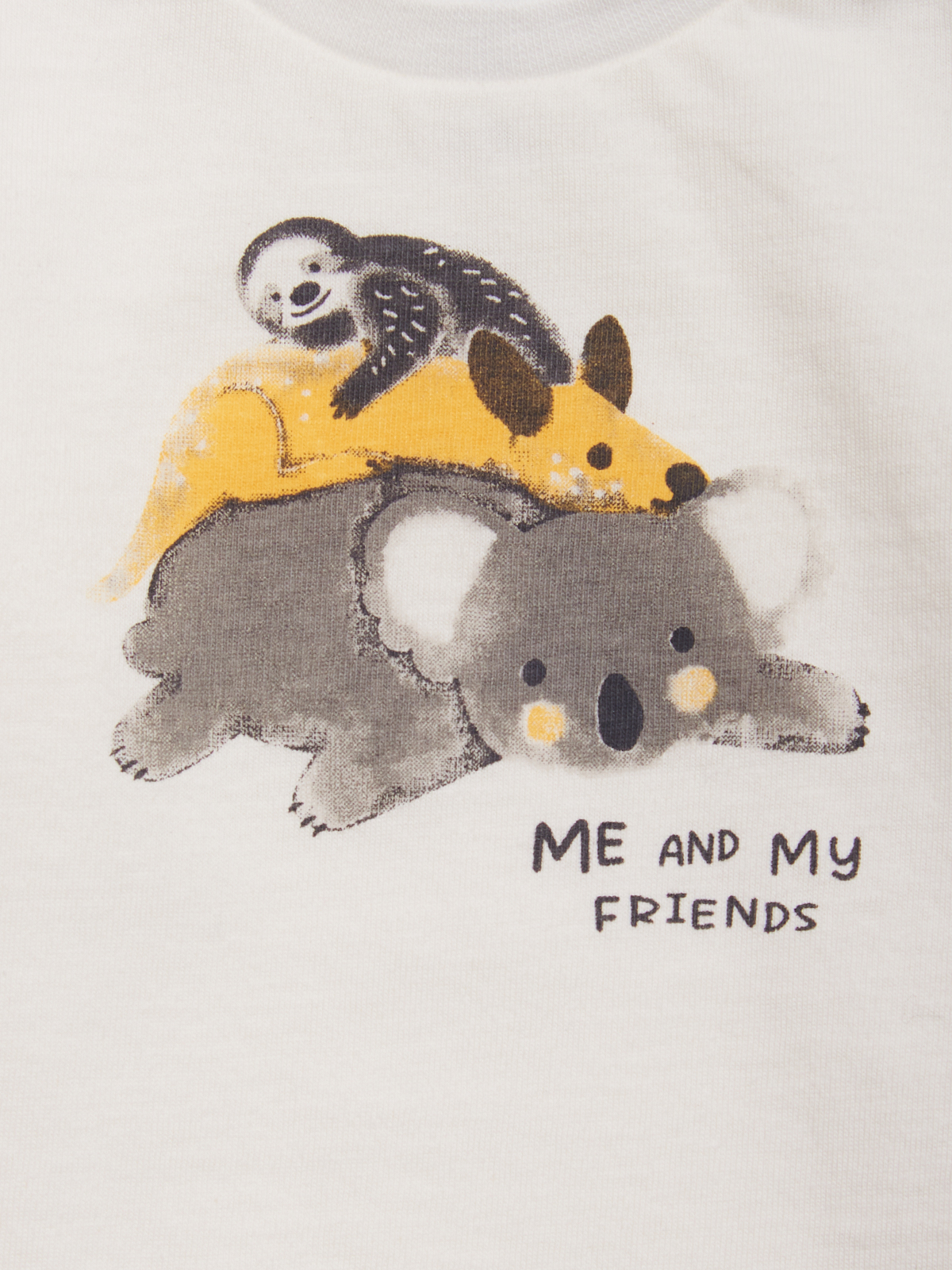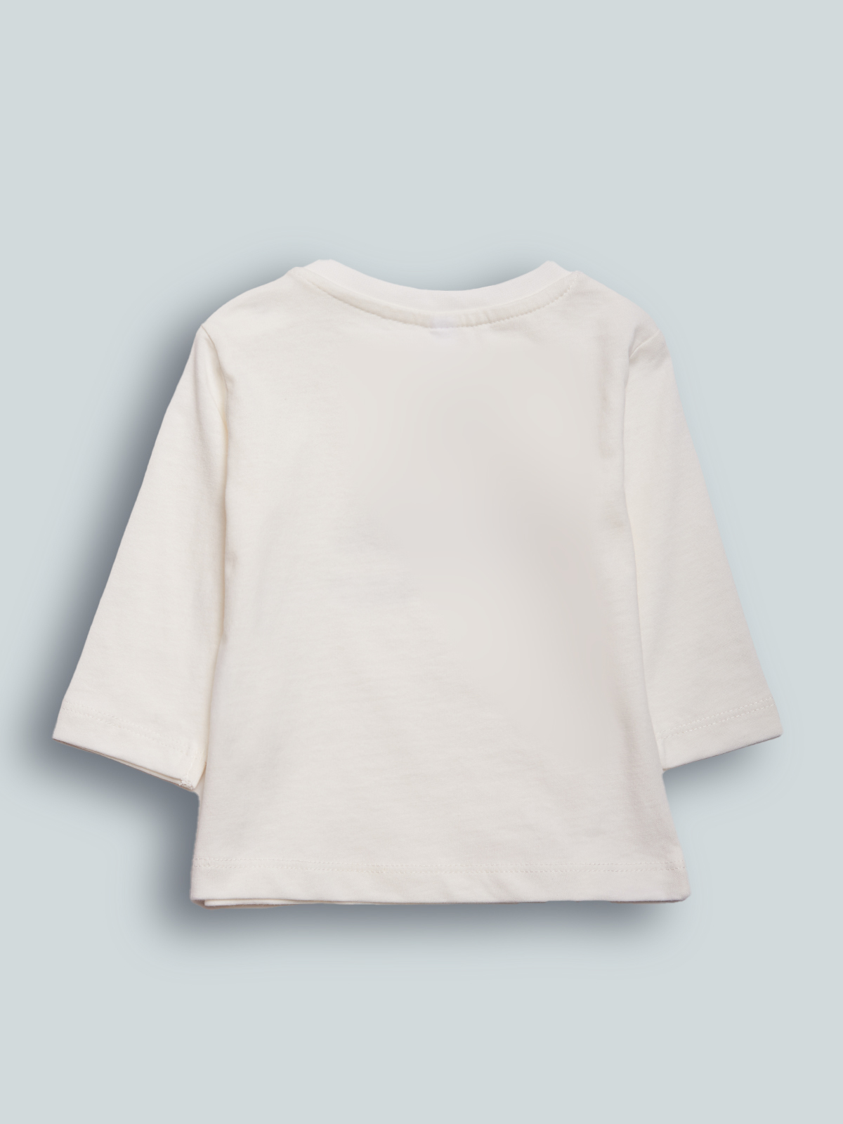 Tshirt girocollo a Manica lunga in cotone. Pratica apertura con bottoncini a pressione su spalla, simpatica stampa sul davanti. Divertente e facile da abbinare.