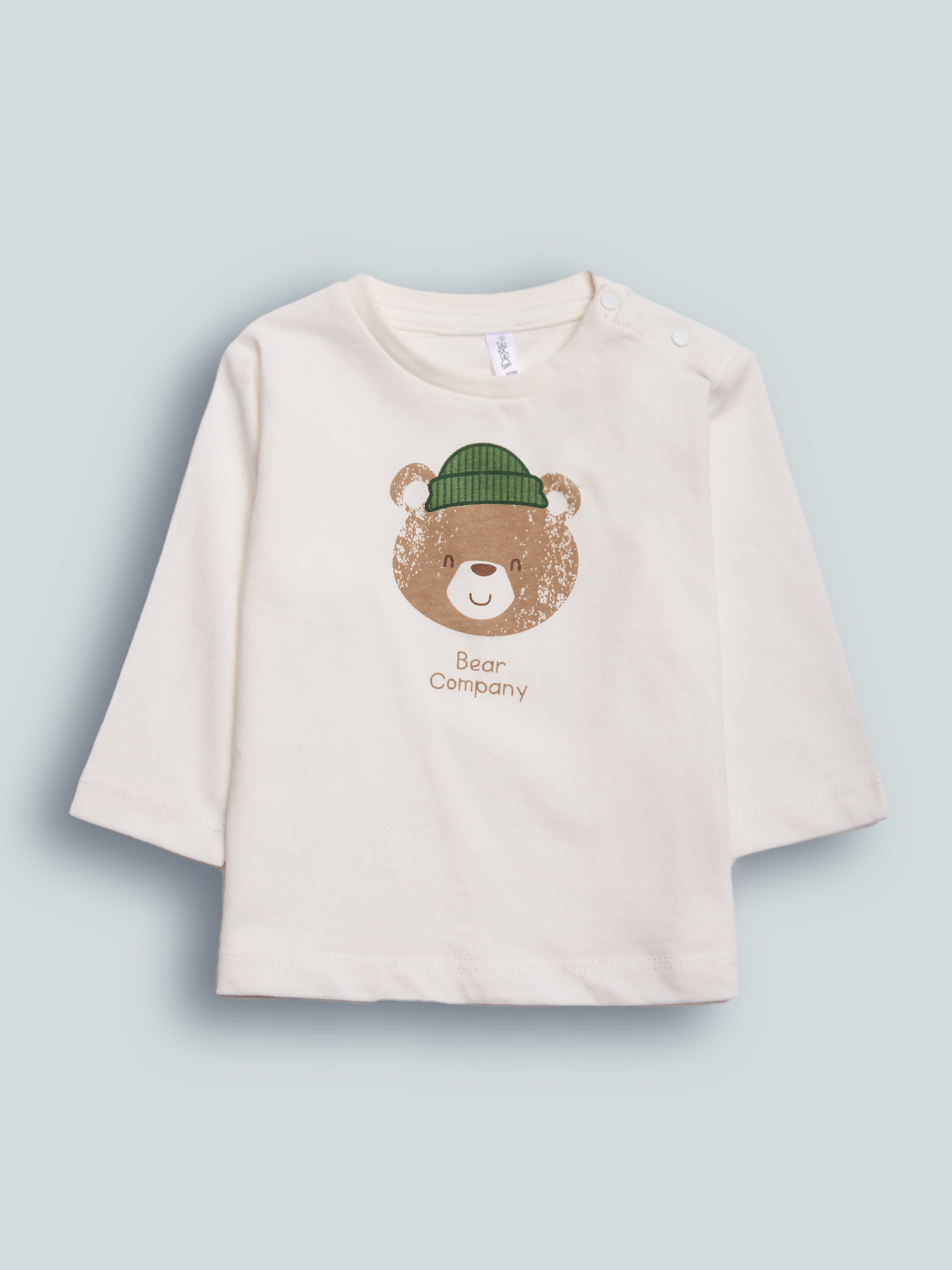 Tshirt girocollo in caldo cotone. Apertura sulla spalla con pratici bottoncini a pressione. Un capo pratico e divertente grazie alla stampa davanti, ideale da indossare tutti i giorni.