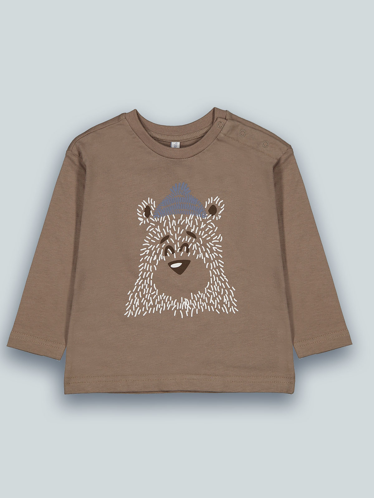 Tshirt manica lunga girocollo in caldo cotone, pratica apertura con bottoncini a pressione su spalla. Stampa sul davanti. Una tshirt pratica e facile da abbinare ad un jeans o ad un comodo pantalone in felpa.