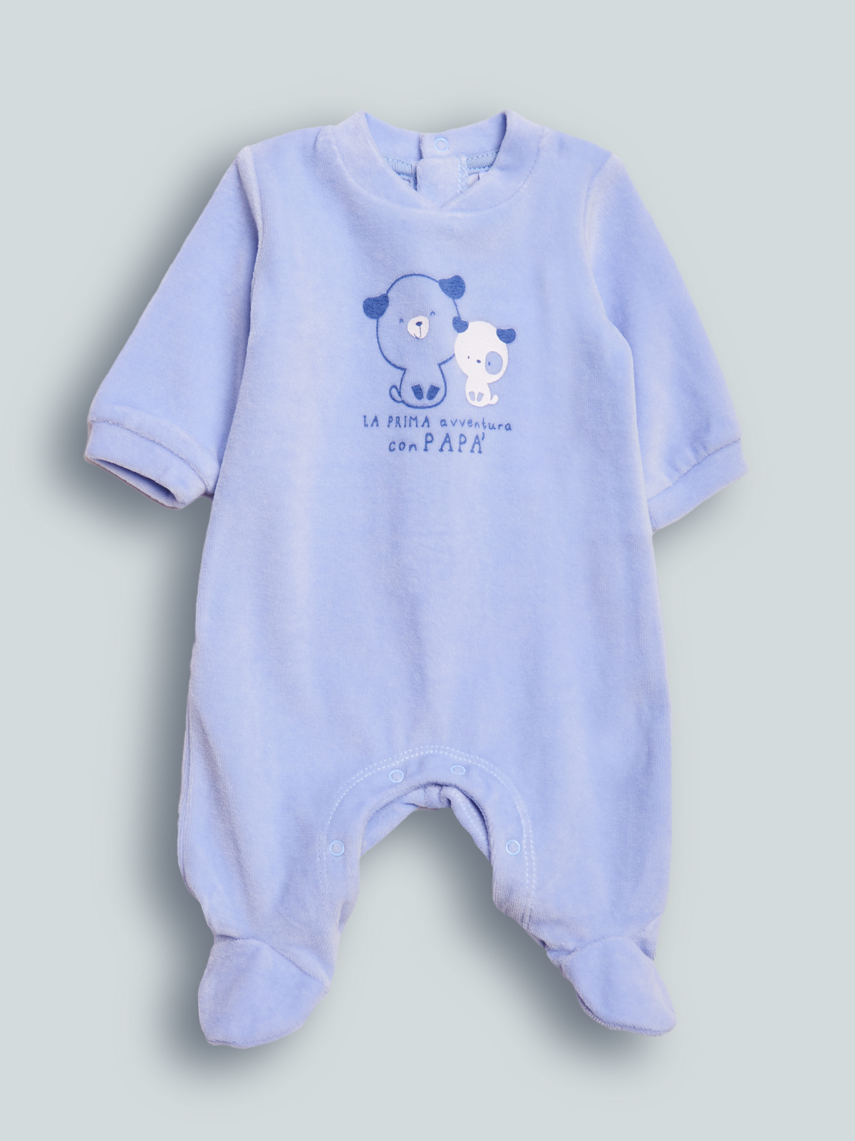 Pigiama manica lunga per neonato. Girocollo serafino. Chiusura con bottoni a pressione per agevolarne l’indosso. Soffice ciniglia per tenere al caldo il nostro neonato. Elemento decorativo: simpatica stampa davanti. Questo pigiamino fa parte del corredino composto da tutti gli articoli indispensabili per il tuo neonato.