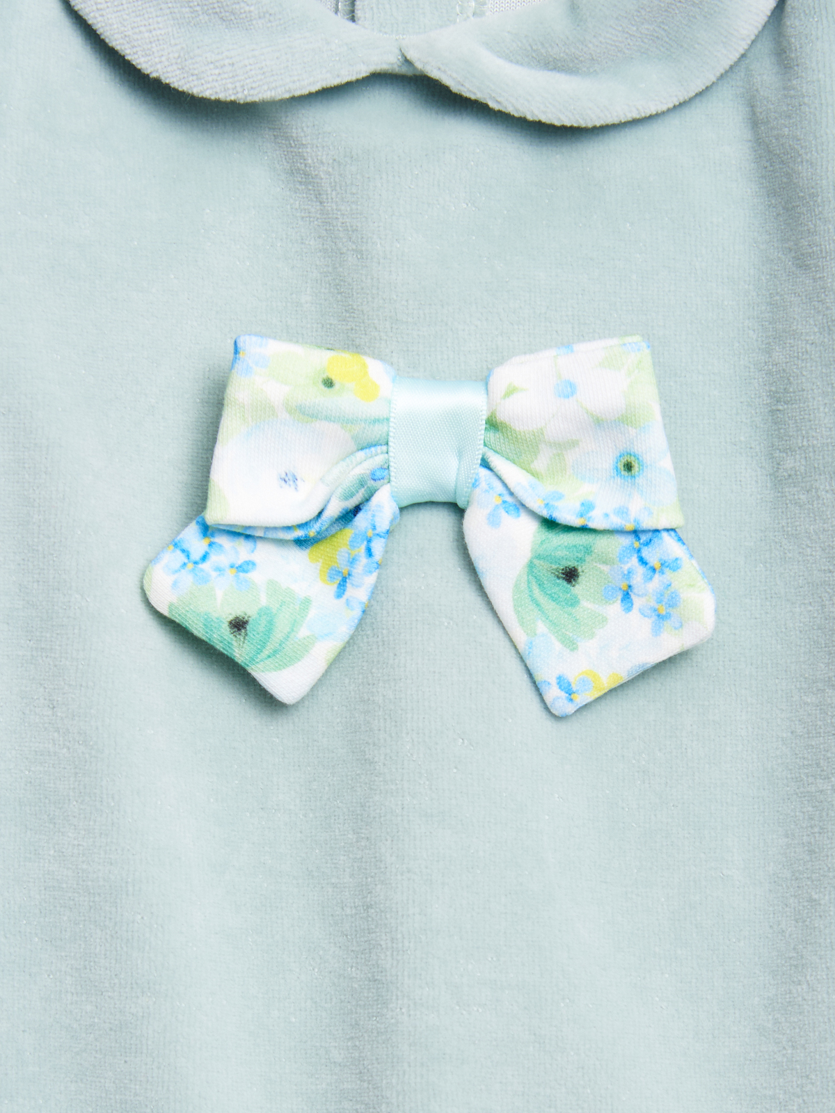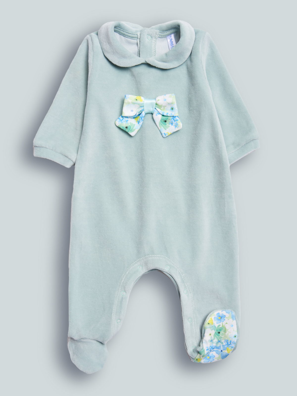 Tutina in Morbida ciniglia, arricchita da fiocco in fantasia floreale sul davanti. Pratica apertura dietro ed entrogamba con bottoncini a pressione. Disponibile in un dolce colore verde, perfetta per aggiungere un tocco di colore alle giornate autunnali.