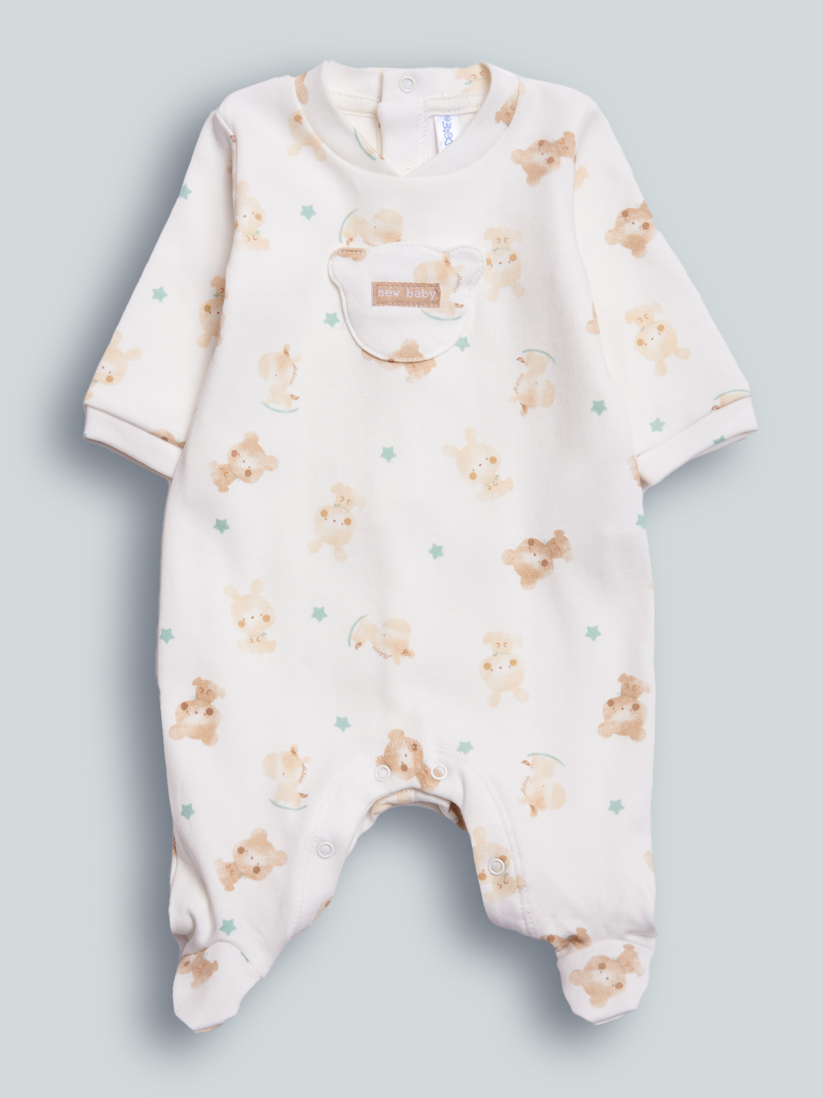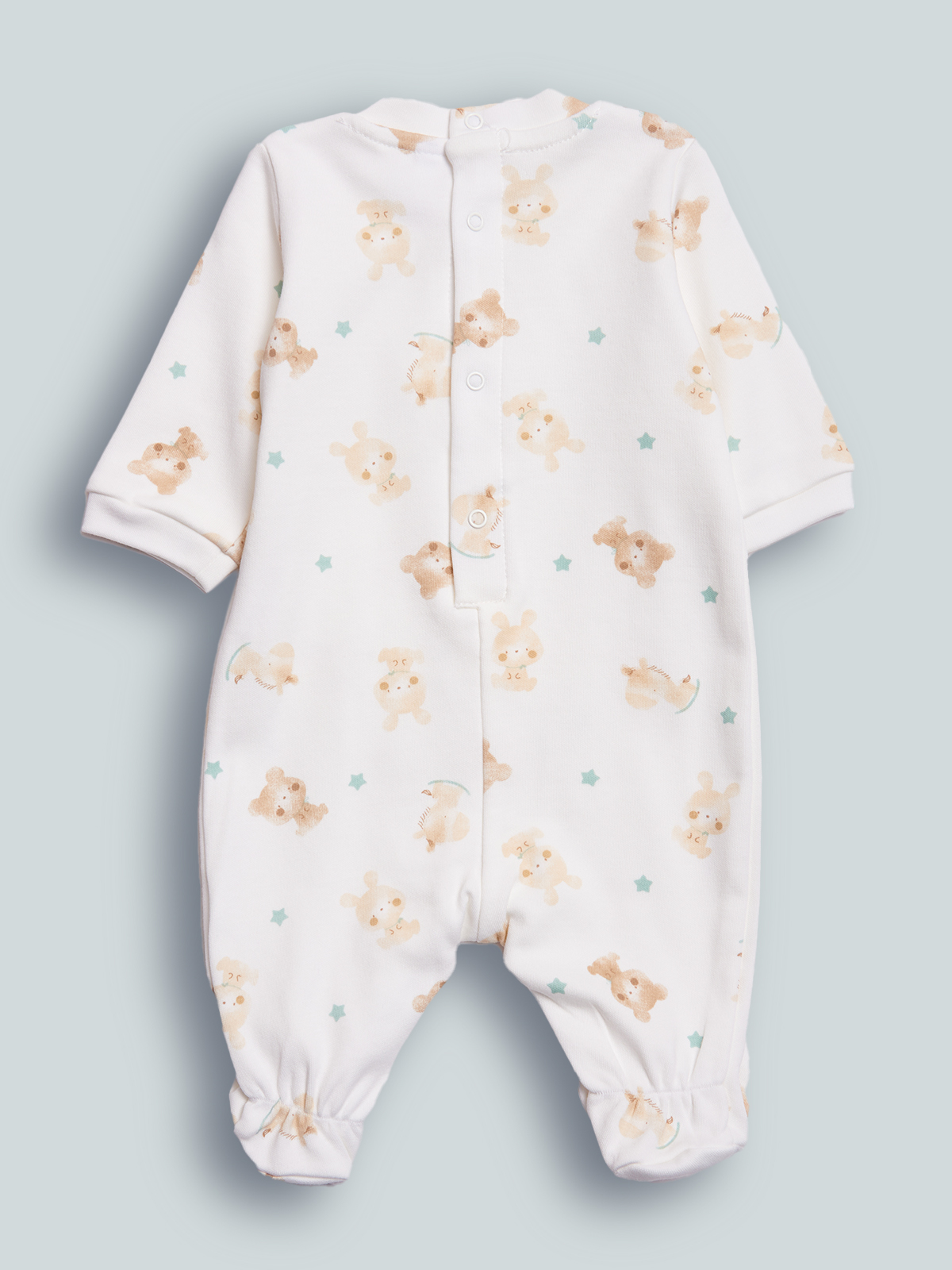 Tutina in caldo cotone stampato fantasia. Pratica apertura sul dietro ed entrogambe con bottoni a pressione per rendere più facile l’indosso. Tasca funzionale a forma di orsetto con etichetta sul davanti. Pigiamino perfetto per lo stile di tutti i giorni!