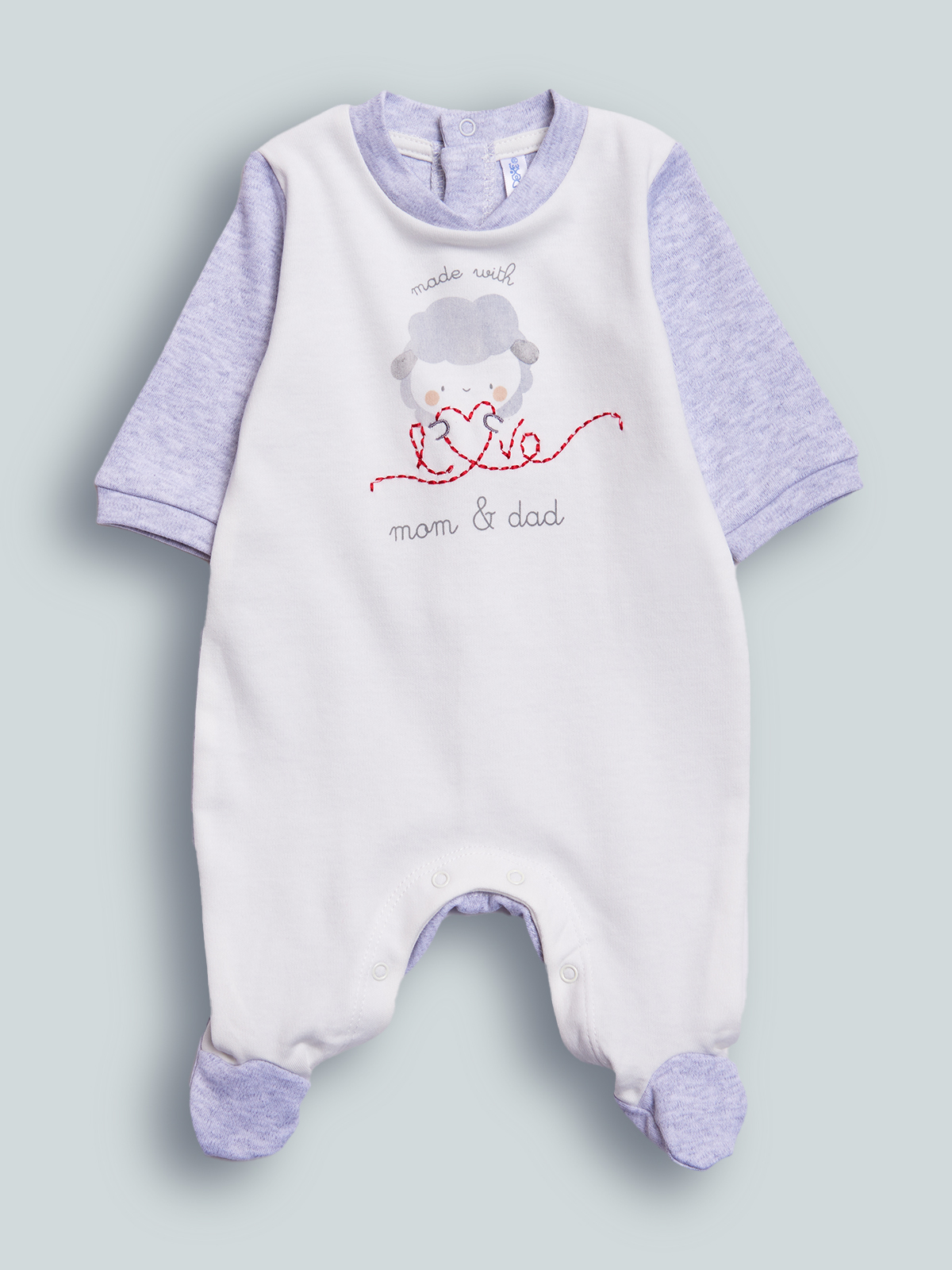 Tutina in caldo cotone bicolore. La vestibilità è Morbida e pratica grazie a bottoni a pressione sul retro e sul cavallo. Il davanti presenta una dolce grafica stampata e ricamata. Questo pigiamino fa parte del corredino composto da tutti gli articoli indispensabili per il tuo neonato.
