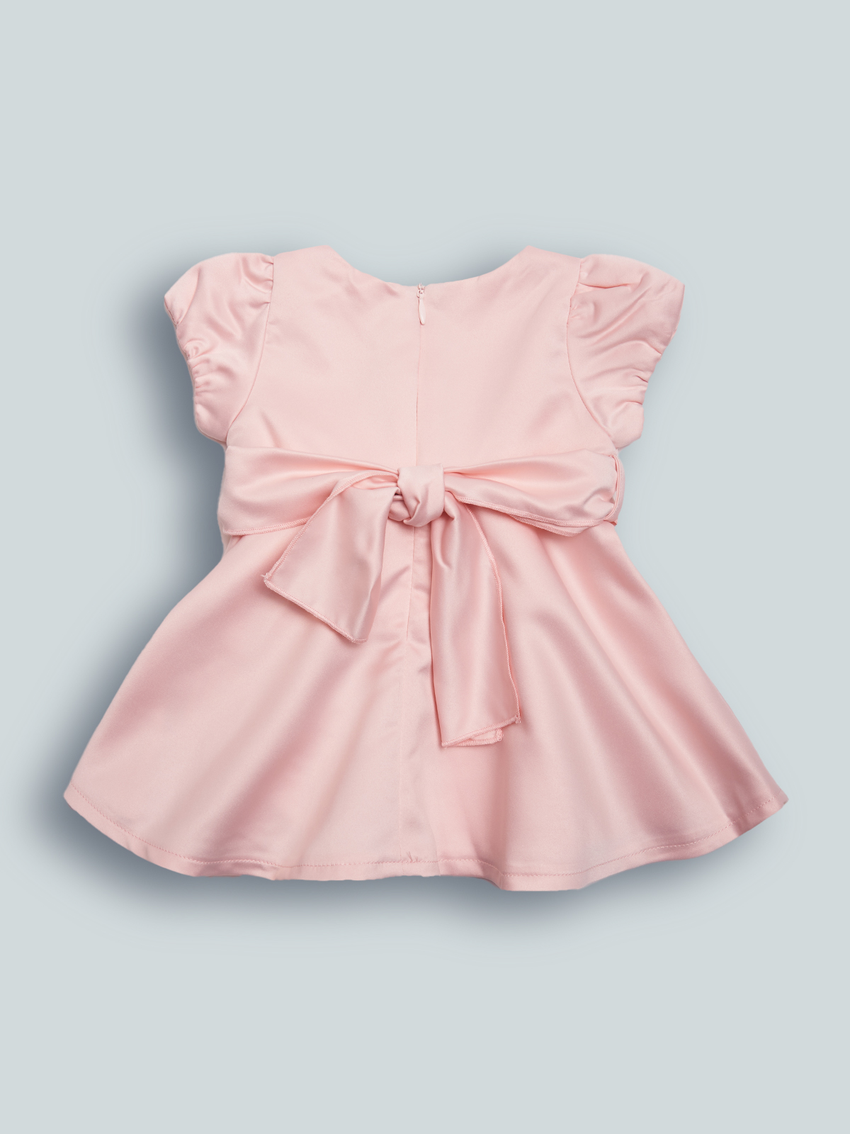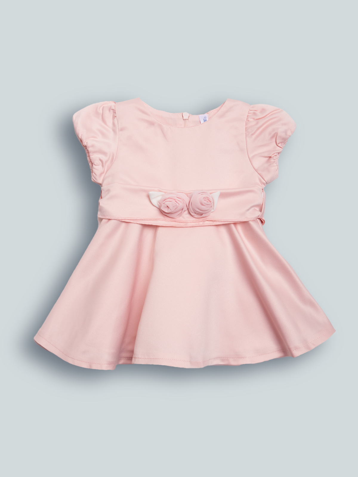 Vestito in raso lucido, Manica corta. Foderato internamente in Morbida Mussola di cotone. Sfiziosi fiori su fusciacca donano un valore aggiunto al capo. Taglio in vita per Maggiore ampiezza ed una caduta elegante. Pratico da indossare grazie all’apertura sul dietro con zip. Ideale da abbinare ai collant della collezione. Un vestito da vera principessa, ideale per le grandi occasioni.